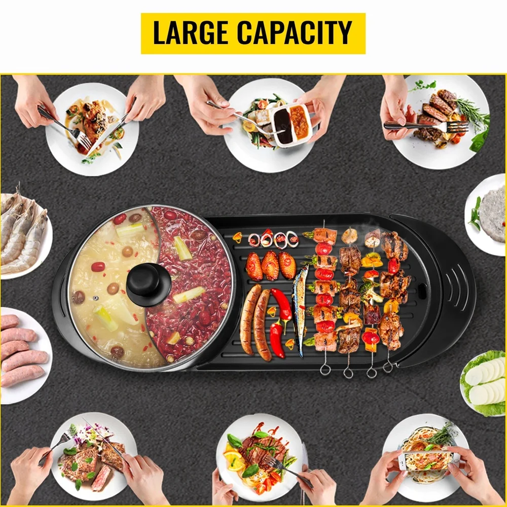 2 in 1 Electric Hot Pot Grill 3.25L Multifunctional Teppanyaki Indoor BBQ Nonstick Cooking Pot with Temperature Control